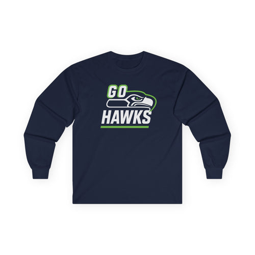 Show your Seattle Seahawks pride with Go Hawks Perfect Blue Friday T-shirt! This lightweight and comfortable t-shirt is made from 100% cotton to ensure all-day comfort. The vibrant blue color and bold graphic of the Seattle Seahawks logo will keep you feeling motivated and inspired, while the ribbed crew neckline gives the t-shirt a classic, casual look. Whether you're meeting friends for game day, or just running errands, this t-shirt will keep you feeling comfortable and looking stylish. Show your support and join the Seattle Seahawks team with Go Hawks Perfect Blue Friday T-shirt!